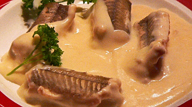Aal in Käse-Sahnesauce