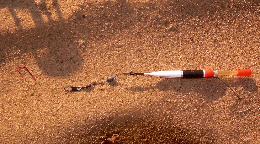 Diese Montage wird bei größerer Wassertiefe und/oder bei größeren Wurfweiten eingesetzt. Im Gegensatz zur vorhergehenden Methode bewegt sich der Schwimmer hierbei jedoch weitestgehend frei auf der Hauptschnur.