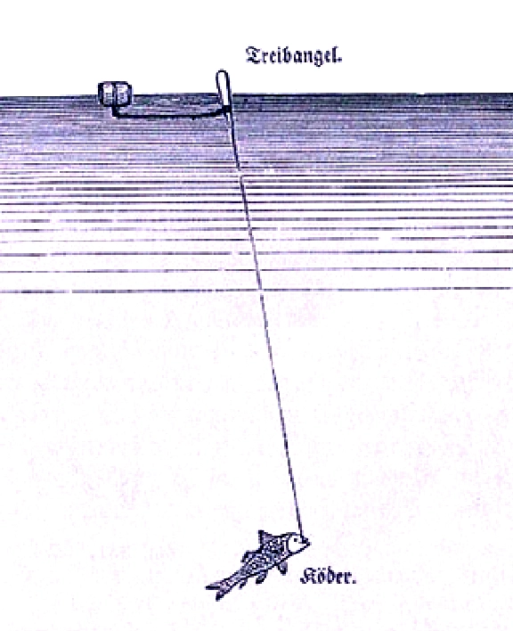 Die Tiefe wurde durch weiteres Aufrollen des Vorfachs auf 1–2 m eingestellt. Bei Dämmerung wurde dieses Bündel auf der ablandigen Windseite zu Wasser gelassen oder ausgeworfen. So trieben die Binsenbündel über Nacht langsam quer über das Gewässer zum gegenüberliegenden Ufer.