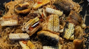 Dieses Gericht zeigt, wie vielseitig Aal auch außerhalb der europäischen Küche eingesetzt wird. Knusprig gebratener Aal trifft hier auf asiatische Aromen und eine würzige Glasnudelbasis.