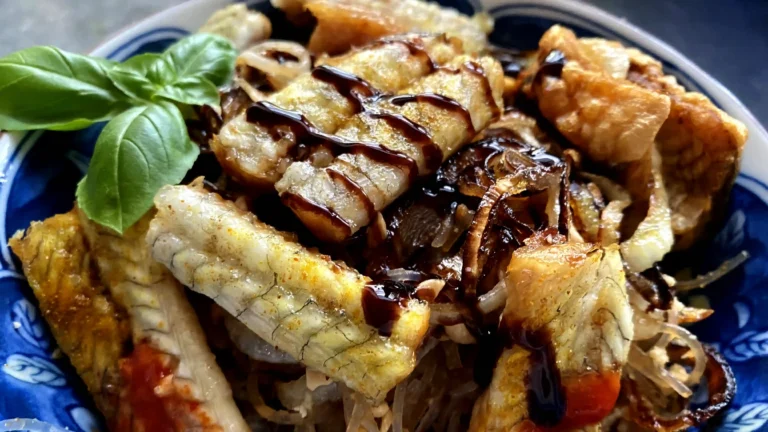Dieses Gericht zeigt, wie vielseitig Aal auch außerhalb der europäischen Küche eingesetzt wird. Knusprig gebratener Aal trifft hier auf asiatische Aromen und eine würzige Glasnudelbasis.