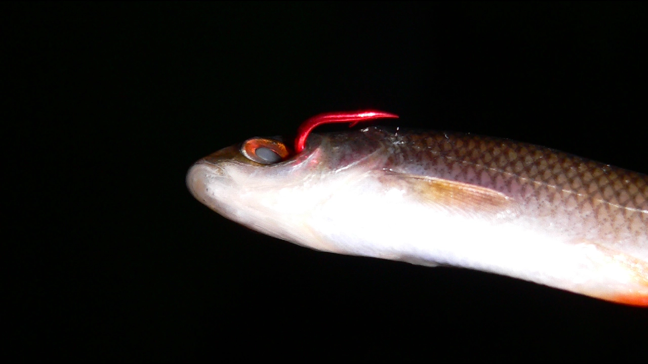 Bei halben Köderfischen kann der Aal jedoch nicht am Bauch angreifen. Zudem berauscht ihn seine Fressgier derart, dass er direkt an der Schnittstelle angreift.