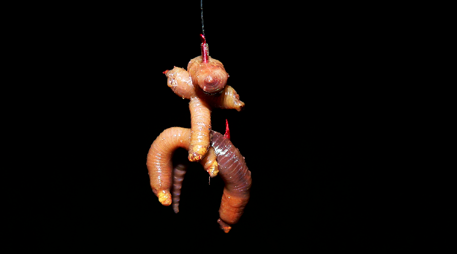 Für eine optimale Lockwirkung wird der Tauwurm als Schaschlik auf den Haken gesteckt. D.h. der Wurm wird in mehrere Stücke geschnitten bevor diese dann auf den Haken kommen. Dieser Köder muss jedoch häufiger ausgetauscht werden, da er relativ schnell auslaugt. Er hält allerdings auch sehr gut auf dem Haken.